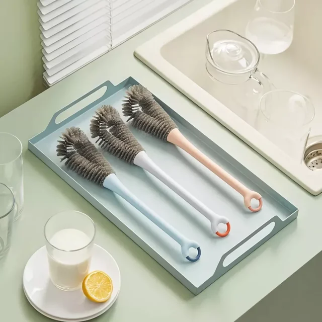 The brush features a 360° rotating design, ensuring comprehensive cleaning with every stroke. The long handle offers an extended reach, perfect for taller bottles and cups, allowing you to reach the bottom and sides with ease. Made from high-quality PP materials, this brush is eco-friendly and built to last, making it a smart addition to your kitchen essentials. Whether for baby bottles, water bottles, or travel mugs, this brush is designed to keep everything sparkling clean.