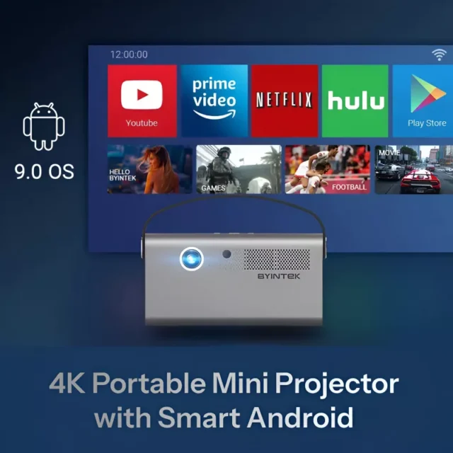 • Built-in Battery: The long-lasting battery allows for 1.5 to 2.5 hours of viewing time, perfect for outdoor cinema experiences.