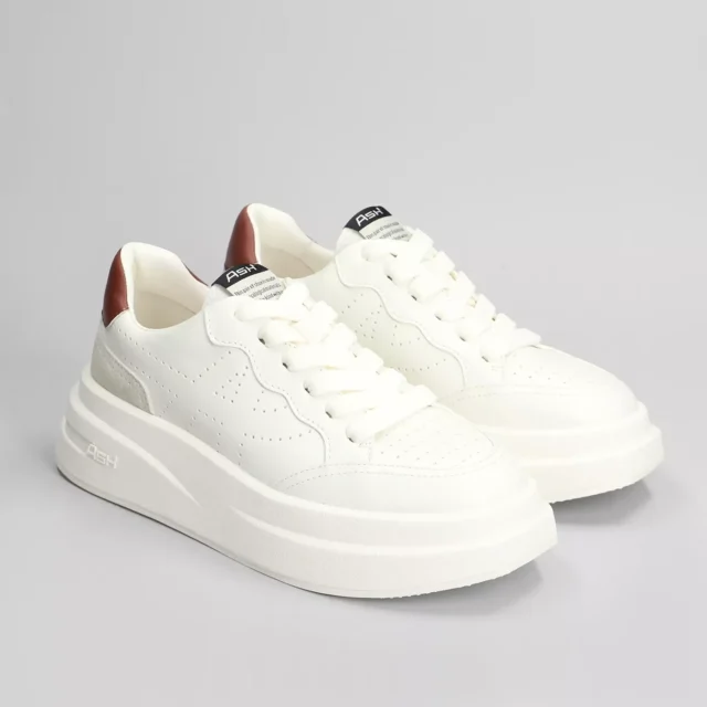 The Ash Women’s White Leather Sneakers are crafted with meticulous attention to detail, ensuring a luxurious yet functional shoe. The high-quality leather provides a sleek and polished look, while the rubber sole offers traction and durability. The plain pattern and lace-up fastening add to their versatility, making these sneakers perfect for a range of occasions, from casual weekends to chic city outings. Their timeless design ensures they remain a stylish choice for seasons to come.