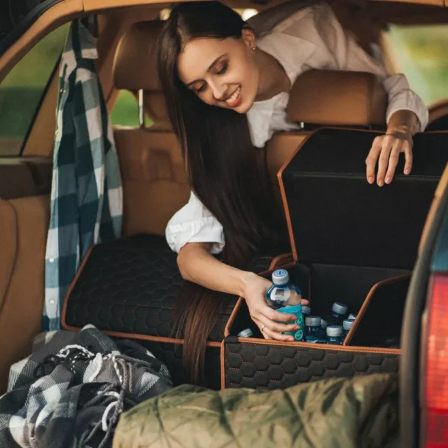 With two compartments and a removable divider, this trunk organizer provides versatile storage options. Available in two sizes: a 17.7-inch width with a 40-liter capacity, and a 21.6-inch width with a 50-liter capacity, it is perfect for storing car tools, cleaning supplies, groceries, sports gear, or camping equipment.