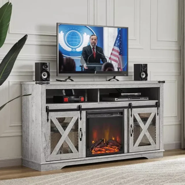 Bring warmth, style, and convenience to your living space with this versatile Electric Fireplace TV Console. Add this stunning piece to your home today and transform your living room into a cozy, inviting retreat.