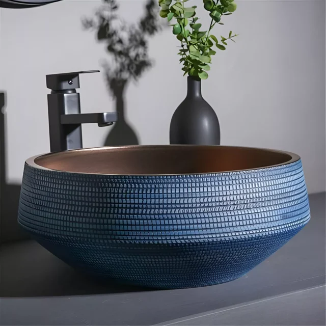 • Elegant Design: The stunning blue metal glaze is an eye-catching feature that elevates any bathroom or outdoor wash area.
