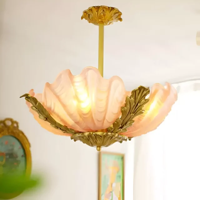 Don’t settle for ordinary lighting when you can elevate your decor with this luxurious chandelier. Embrace the charm and elegance of French retro style, and let your space shine with sophistication. Illuminate your room with warmth and character by choosing this Pink Shell Glass Chandelier today. It’s not just lighting; it’s the perfect finishing touch to a beautifully designed room.