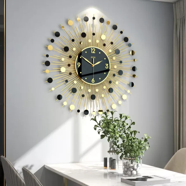 This beautiful large wall clock combines minimalist design with a luxurious touch, making it the perfect centerpiece for any living room. Its elegant, rotund metal frame and abstract style create an artful yet functional piece that enhances any room’s decor. Crafted with attention to detail, this clock not only serves as a timepiece but as a bold decorative element that brings sophistication and contemporary charm to your space.