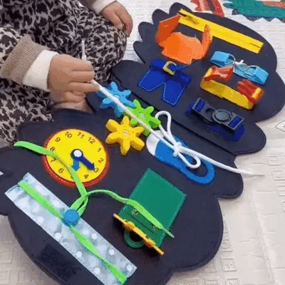 This toy has been a fabulous addition to our home! It's helped my child improve their hand-eye coordination and fine skills. ๐My toddler can't get enough of this board. She loves the activities like tying shoelaces and snapping buttons. A great buy!