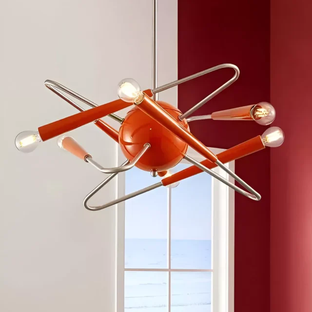 The Postmodern Space Age Pendant Light is more than a lighting solution—it’s an artistic statement that brings depth, character, and charm to any setting. This decorative lamp creates a warm, ambient glow, enhancing the ambiance of your living spaces while reflecting your sophisticated taste in design. Its Bauhaus-inspired aesthetic blends seamlessly with modern interiors, while the vibrant orange color and unique shape set it apart as a distinctive décor piece.