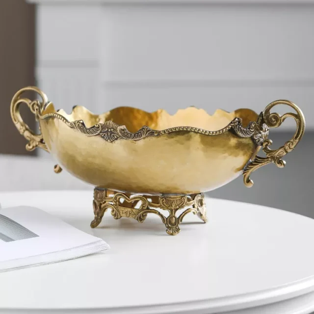Retro Luxury Brass Fruit Bowl – Elegant European-Style Copper Centerpiece