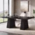 • Modern Executive Design: Sleek black finish with curved edges and a bold double pedestal base adds style and authority to any space.