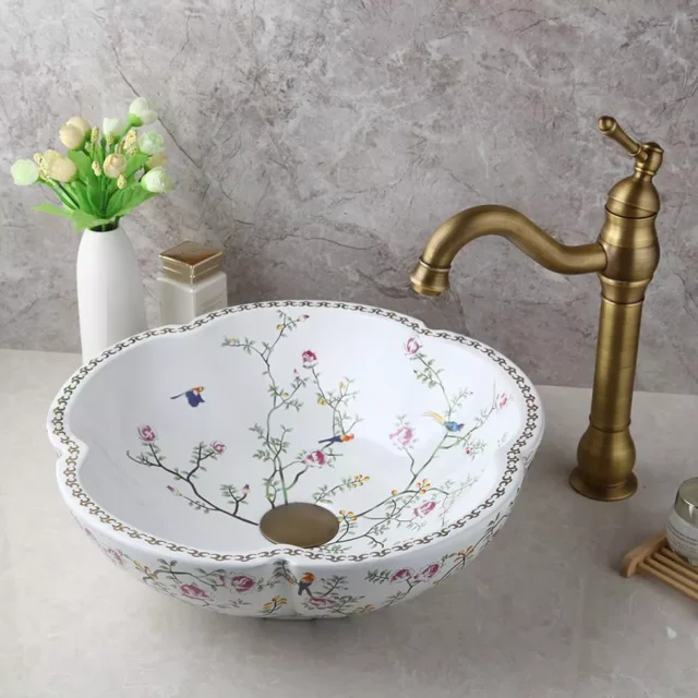 • Enhances Bathroom Aesthetics: The hand-painted floral design and antique finish faucet create a luxurious, spa-like ambiance.